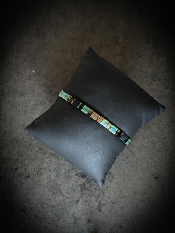 Odkryj niepowtarzalne piękno bransoletki "Black Forest mini" z naszej ekskluzywnej kolekcji Fractal. Ta ręcznie wykonana ozdoba, stworzona z najwyższej jakości japońskich szklanych koralików, to doskonałe połączenie elegancji i nowoczesnego designu, które wprowadza do Twojej stylizacji wyjątkowy charakter.