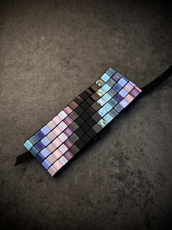 Kolory: Bransoletka "Black Winter 5" zachwyca swoją stonowaną paletą dominujących barw: fioletowego, turkusowego, różowego, błękitnego oraz czarneg. Te chłodne kolory tworzą harmonijną i dynamiczną kompozycję, inspirowaną surowym pięknem natury. Wprowadzają do Twojej stylizacji energię i niepowtarzalny urok.