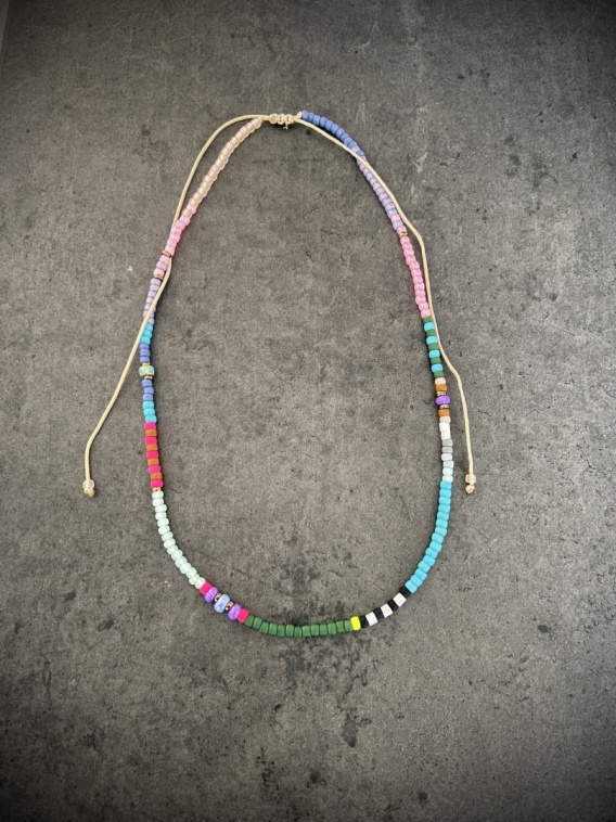Ten regulowany, ręcznie wykonany naszyjnik to połączenie miejskiej energii i minimalistycznej elegancji. Stworzony z najwyższej jakości szklanych japońskich i czeskich koralików, zawieszonych na niezwykle trwałym nylonowym sznurku jubilerskim, idealnie wpisuje się w rytm współczesnego miasta. To biżuteria, która podkreśla charakter, swobodę i indywidualny styl.