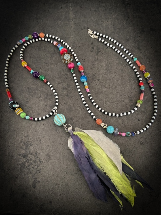 Materiał: Naszyjnik "Premium Bird" został wykonany z najwyższej jakości szklanych koralików japońskich i czeskich oraz dużej ilości kamieni naturalnych. Uroku dodaje mu zawieszony w połowie długości jedwabny chwost, który sprawia, że sylwetka wydaje się smuklejsza. Każdy koralik jest starannie dobrany, tworząc harmonijną i kolorową kompozycję, która przyciąga wzrok i dodaje Twojej stylizacji wyjątkowego uroku. Zapięcie ze srebra próby 925 o wadze poniżej 5 gramów.