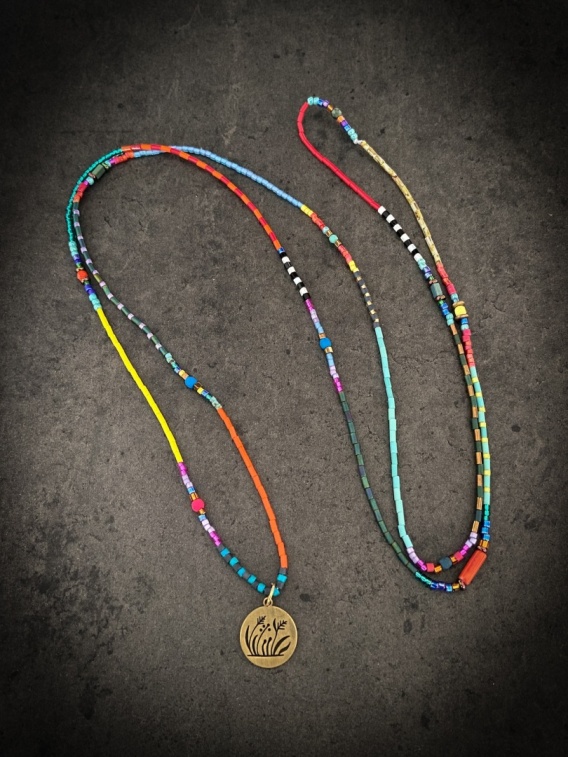 Materiał: Ten ręcznie wykonany naszyjnik, stworzony z najwyższej jakości szklanych japońskich i czeskich koralików oraz kamyczków naturalnych, jest zawieszony na niezwykle trwałym nylonowym sznurku jubilerskim, co gwarantuje jego długowieczność i komfort noszenia. Każdy koralik został starannie dobrany, tworząc harmonijną i dynamiczną kompozycję, która przyciąga wzrok i dodaje Twojej stylizacji wyjątkowego charakteru.